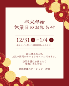 ゴールデンウイーク期間中も、通常通りの受付対応となります。 なお、土曜日。日曜日は通常通り電話受付を休止いたしますが、訪問看護には対応しております。